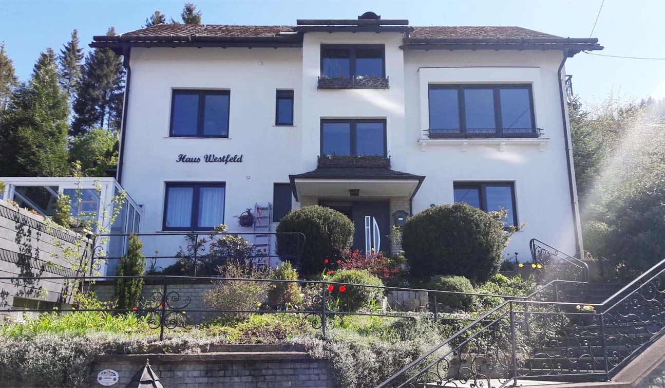 Das Haus Westfeld liegt auf 530 m Höhe an der südöstlichen Hangseite von Westfeld mit einem besonders schönen Panoramablick auf das Dorf. Vom Haus aus selbst gehen unmittelbar Wanderwege in das weitverzweigte Wandernetz des Schmallenberger Sauerlandes ab. Die Wanderroute „Rothaarsteig“ ist nur vier Kilometer vom Haus entfernt.